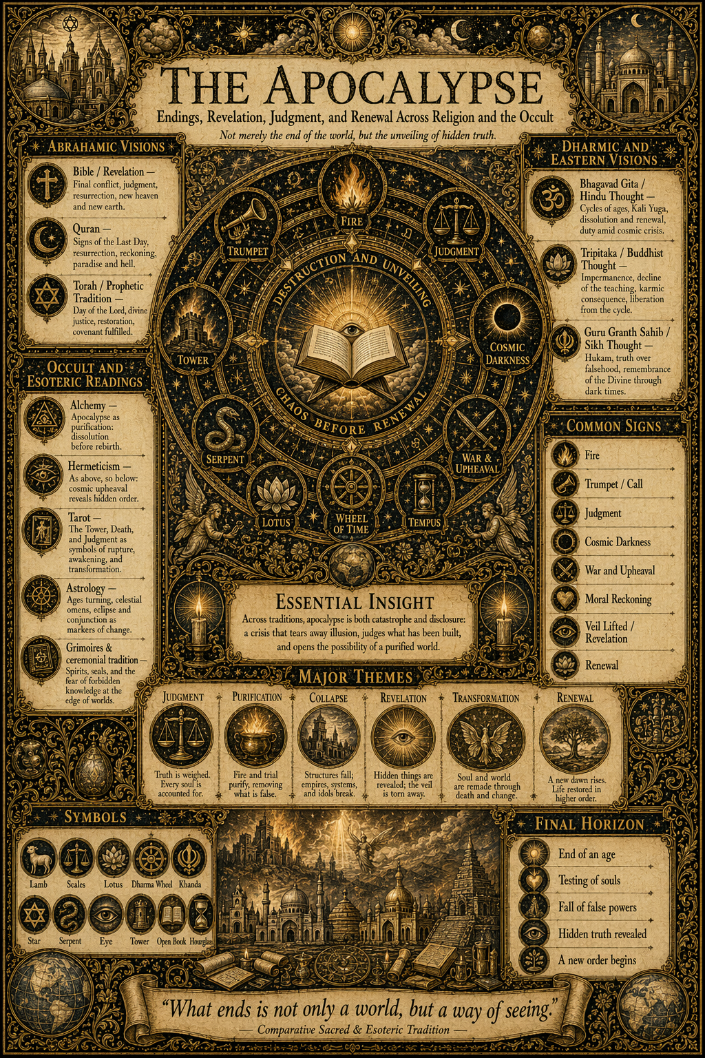Page 18 - The Apocalypse Atlas & Symbols ApprovedA manuscript reference folio that maps The Apocalypse's governing ideas, symbolic structure, practical uses, and comparative context into one museum-style manuscript page.